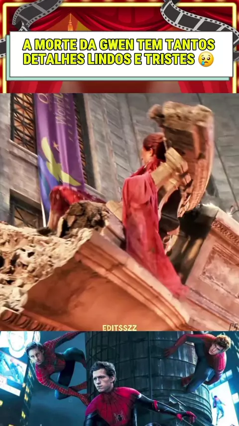 a morte da gwen tem tantos detalhes lindos e tristes.. a cena em câmera lenta porque o relógio quebrou, a teia em formato de uma mão.. como se fosse o peter tentando alcançá-la e ela não gritando, apenas fecha os olhos com lágrimas e aceita.. #AndrewGarfield #tobeymaguire #tomholland #emmastone #GwenStacy