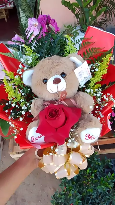 buquê com ursinho e 1 rosa #flores #floricultura #presentes