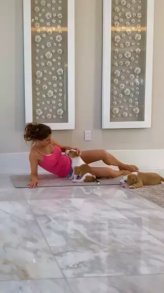 Trying to work out wIth a litter of puppies! #sideplank #mermaidlift #pilatesmat