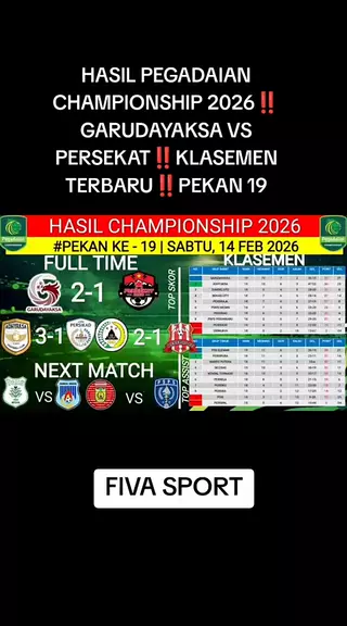 HASIL PEGADAIAN CHAMPIONSHIP 2026‼️GARUDAYAKSA VS PERSEKAT‼️KLASEMEN TERBARU‼️PEKAN 19 #liga2 #garudayaksafc #persekat