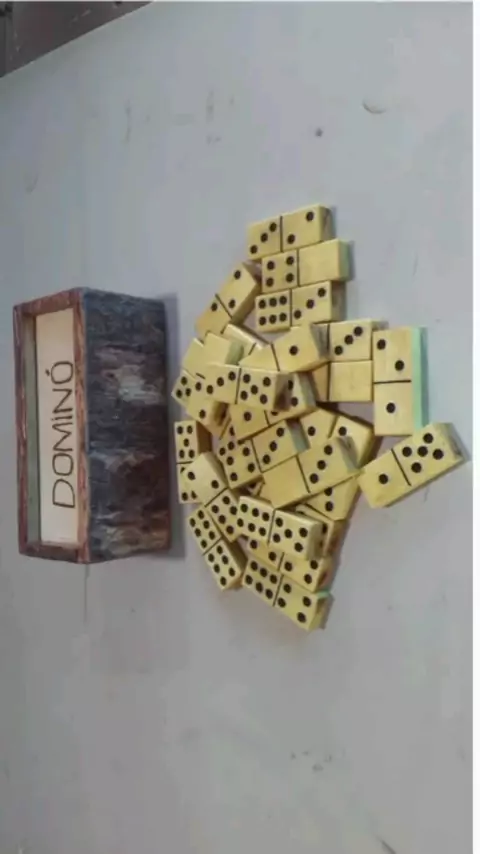 domino em madeira e estojo em madeira rústico.