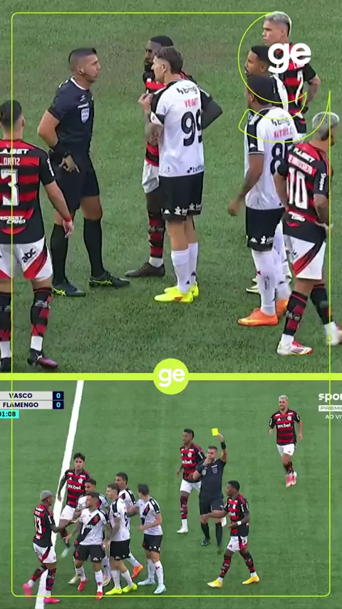 MAS JÁ? 🔥🔥 Jogadores de Vasco e Flamengo fazem um bolinho e discutem muito após falta para o Rubro-Negro. Árbitro Bruno Arleu chega para acalmar os ânimos. Wesley foi o principal alvo da discussão. #kwaisports