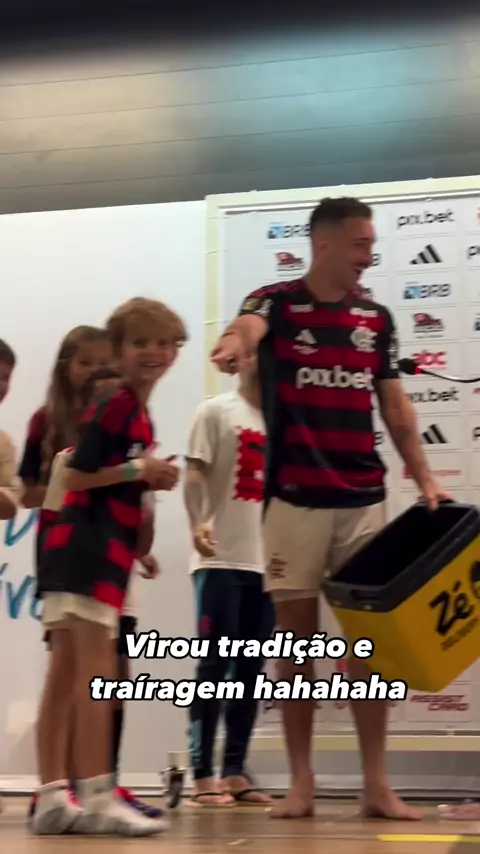 O filho do Filipe Luís chamou geral pra dar banho de gatorade no treinador do Flamengo 😂😂😂. Virou tradição já #kwaisports