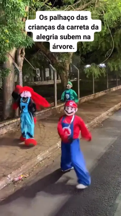 Os palhaços das crianças da carreta da alegria sobem na árvore #noticia