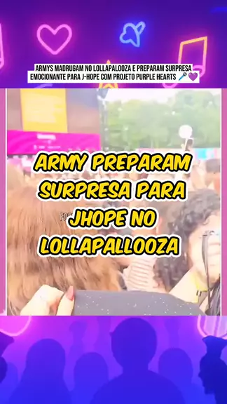ARMYs madrugam no Lollapalooza e preparam surpresa emocionante para J-Hope com projeto Purple Hearts 🎤💜 #NarraStars #kpop