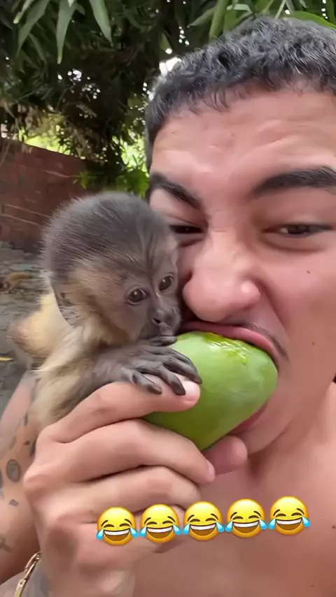 Já vi manga com sal agora manga com mасacо é novidade 😂 #macaco #manga #humor #vidaanimal #amoranimal 🎥: @cearenserlk33