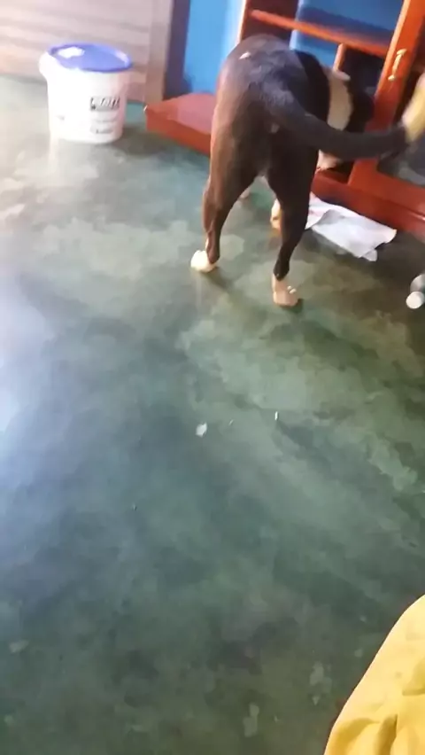 Pitty bull brincando com o pintinho