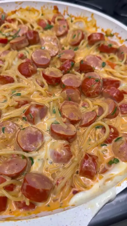 Macarrão com salsicha.#topz