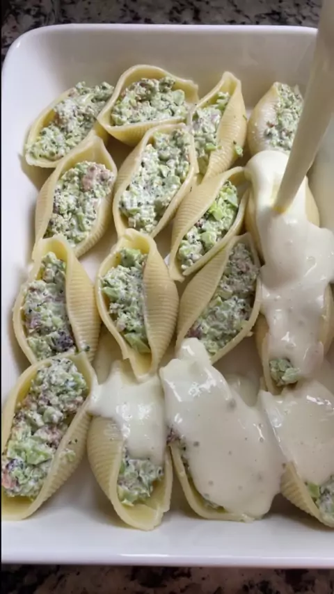 conchiglione com brócolis e bacon. É nosso perfil engraçado é @Meu casall(O150001332296833) segue aí.