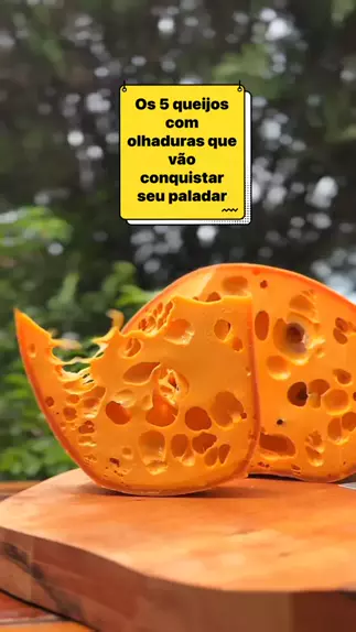 Os 5 queijos com olhaduras que vão conquistar seu paladar: 1 - Queijo Marandu 2 - Queijo Luna Piene 3 - Queijo Porão 4 - Queijo Tipo Gruyere 5 - Queijo Figueira