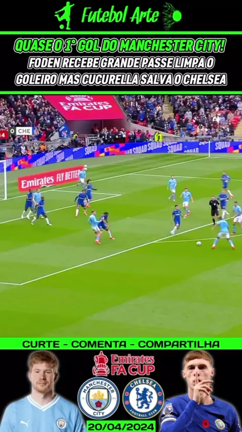 mas o primeiro gol do Manchester City! Foden recebe brigando de passa e passa pelo goleiro mas a defesa do Chelsea salva em cima da linha #chelsea #manchestercity #Esporteviral #ManchesterCityxChelsea #facup