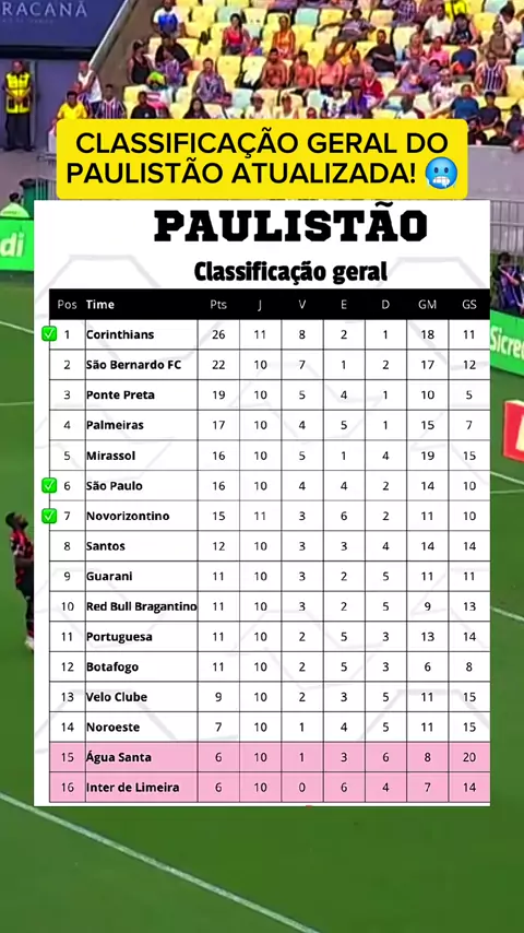 CLASSIFICAÇÃO GERAL DO PAULISTÃO ATUALIZADA! 🥶🥶🥶 #viraliza #maisviews #Paulistão