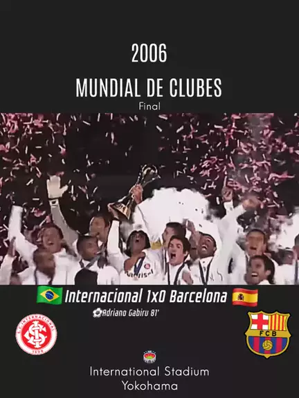 Internacional 1x0 Barcelona - No dia 16 de dezembro de 2006, em Yokohama no Japão, o Internacional de Porto Alegre vencia o Barcelona com assistência do camisa 10 Iarley e gol do camisa 16 Adriano Gabiru. #mundial #campeao #Futebol #internacional #barcelona