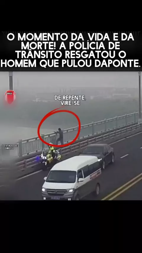 O momento da vida e da morte! A polícia de trânsito resgatou o homem que pulou da ponte.