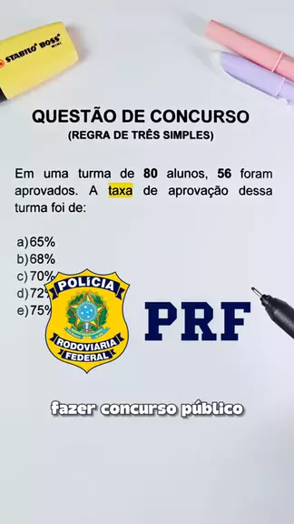 🚨 QUESTÃO DE CONCURSO – REGRA DE TRÊS 🚨 Essa aqui parece simples… mas é exatamente por isso que muita gente erra 😬 📌 Total de alunos 📌 Número de aprovados 📌 Percentual correto Nada de chute. Nada de “aproximar”. Na prova, percentual errado é ponto perdido. 💬 Qual alternativa você marcaria? #PMERJ #policiamilitar #RJ #concurso #exatas