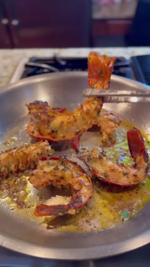 Pan Seared Lobster Tails são tão bons! # lobster # lobstertail # lobstertails # food # EasyRecipe Pan Seared Lobster Tails: 5 oz) Lobster Tails & Split) 6-8 dentes de alho 1 vara de manteiga sem sal 1 colher de sopa de salsa italiana finamente picada 1 colher de sopa de páprica defumada Sal e pimenta para provar seu próprio julgamento) em uma tigela grande jogue em suas caudas de lagosta limpas e divididas. Derreta a manteiga em um copo de vidro Pyrex (ou algo parecido) e jogue no resto d...