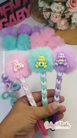 Qual cor você mais gostou? Caneta personalizada com xuxinhas 💗💚💜 . . #canetas #canetaspersonalizadas #maedemenina #facavocemesmo #KwaiFamilia