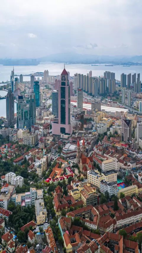 Fotografia aérea da maior cidade de Shandong, a capital da vela da China, a cidade do vinho de cerveja do mundo, a "capital do cinema" das Nações Unidas, a cidade costeira mais bonita da China, você sabe onde fica?