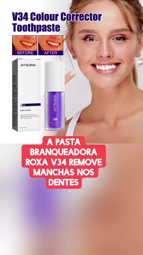 A pasta branqueadora roxa V34 remove manchas nos dentes