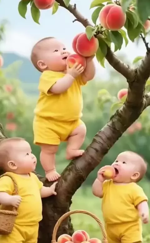 Bebê colhendo frutas