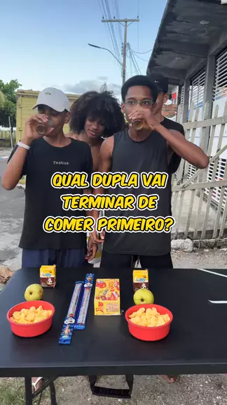Qual dupla vai terminar de comer o salgadinho primeiro? #desafio #jogo #Comida #kwai #viral