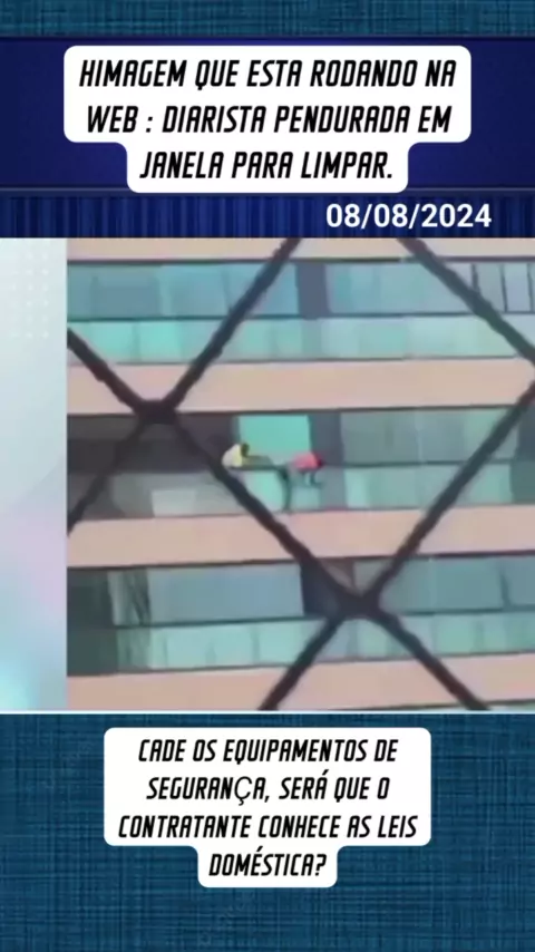 HIMAGEM MOSTRA DIARISTA PENDURADA POR FORA DE UM PRÉDIO LIMPANDO VIDROS E UM HOMEM SEGURANDO SUAS PERNAS,A POLICIA FOI ACIONADA.BAHIA #noticias #ÚltimasNoticia #nwes #reportagem
