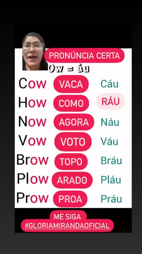Aprenda a pronuncia correta destas palavras, substitua o “ow” por “au” Pratique inglês todos os dias e se torne fluente bem rapidinho! Me siga, curte, comenta e compartilha nossas dicas de inglês. #gloriamirandaoficial