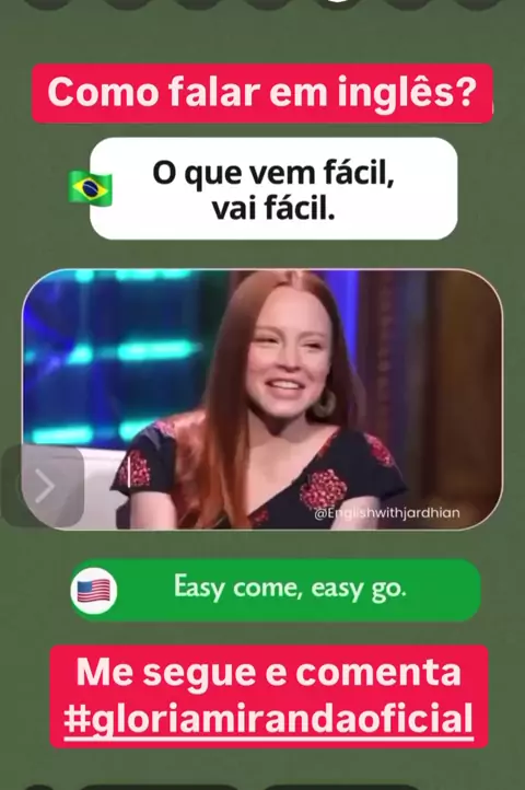 Hey guys!! Você já conhecia essa expressão em inglês? O que vem fácil, vai fácil ! Easy come, easy go! Legal né, então vamos aprender inglês com teacher #gloriamirandaoficial Salva este vídeo e comenta de vc está gostando🙏👍🥰 Curte e compartilha