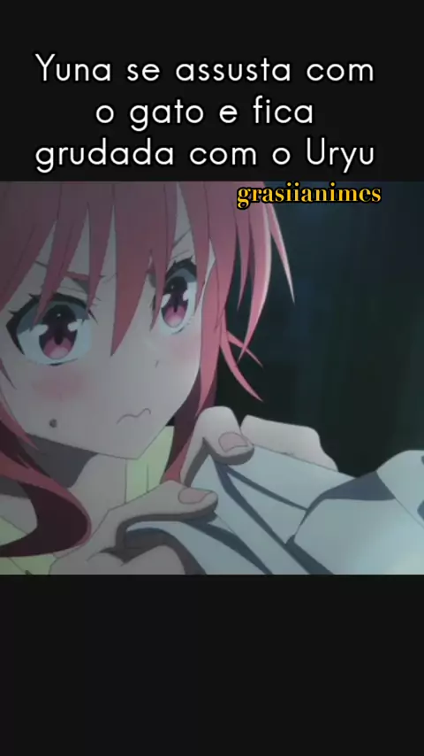 Yuna se assusta com o gato e fica grudada com o Uryu #anime