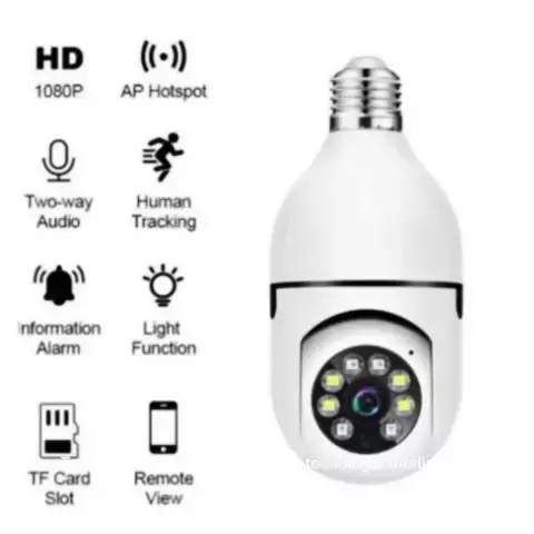 Transforme sua segurança com tecnologia inteligente! Conheça nossa Câmera Inteligente 360° com Visão Noturna e Áudio Bidirecional! Ideal para casa, escritório ou comércio — fácil de instalar diretamente no bocal da lâmpada! Principais funções: • Qualidade HD 1080P • Conexão via Wi-Fi/AP Hotspot • Detecção de movimento com rastreamento humano • Comunicação com áudio bidirecional • Visão noturna com LED infravermelho • Acesso remoto pelo celular • Alerta por movimento e função de luz • Entrada par