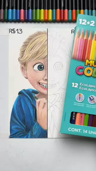 Eu vou pintar metade desse desenho da riley de divertida mente com um lápis barato e ou outro caro