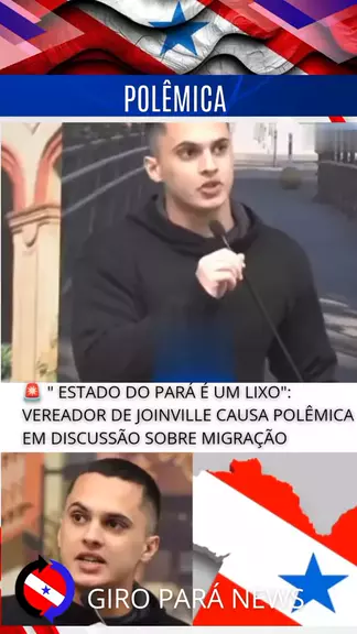 Na última segunda-feira (25) , vereadores de Joinville-SC discutiram e abordaram o tema da migração. Em determinado momento , o vereador Mateus Batista ( União Brasil) chamou o Estado do Pará de " lixo ". O parlamentar afirmou que não é contra migração , mas apontou problemas que o Pará sobre . " Belém tem 57% da sua população favelizada . Estou falando da forma como o Estado é governado . Esse fluxo migratório está sendo pressionado novamente por causa de Estados mal geridos no Norte e Nordest