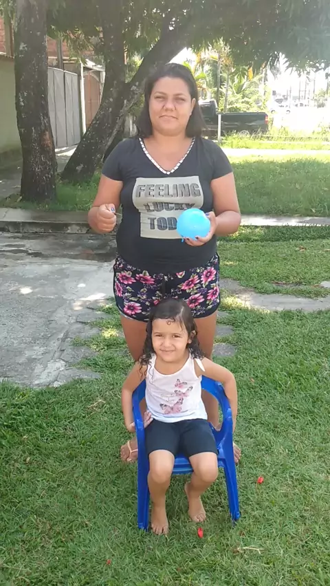Brincando comas crianças de Acerta ou banho ,kkkk #criancas #ferias #bexiga #Lorena
