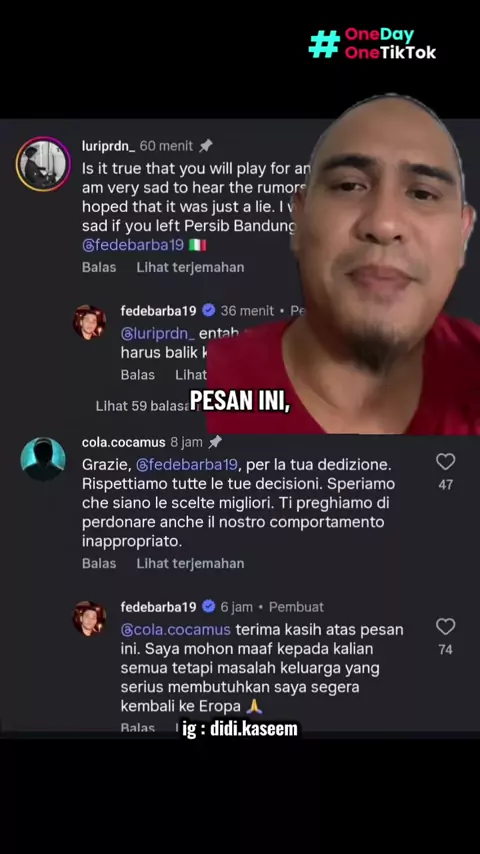 Federico Barba hampir pasti akan meninggalkan Persib Bandung #OneDayOne #olahraga #persib #federicobarba