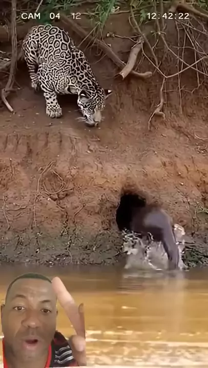 #onça #onçapintada onça tenta pegar filhote de ariranha na beira do rio