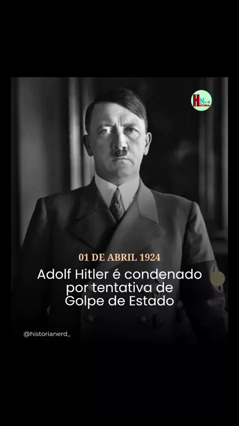 Na data de hoje na história, 01 de abril de 1924, Adolf Hitler é condenado pela tentativa de golpe de Estado em Munique, em 1923, através do "Putsch da Cervejaria". O golpe falhou, e Hitler foi preso, na cadeia escreveu seu famigerado livro Mein Kampf "Minha Luta". #história #curiosidades #interessante