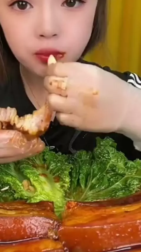 ela adora comer toucinho de porco aí ela misturou com todo esse couve botou muito sal e muita pimenta eu não sei o que houve mas tinha bosta no meio #mukbangfood #mukbang ##horadecomercomer #comida #fy