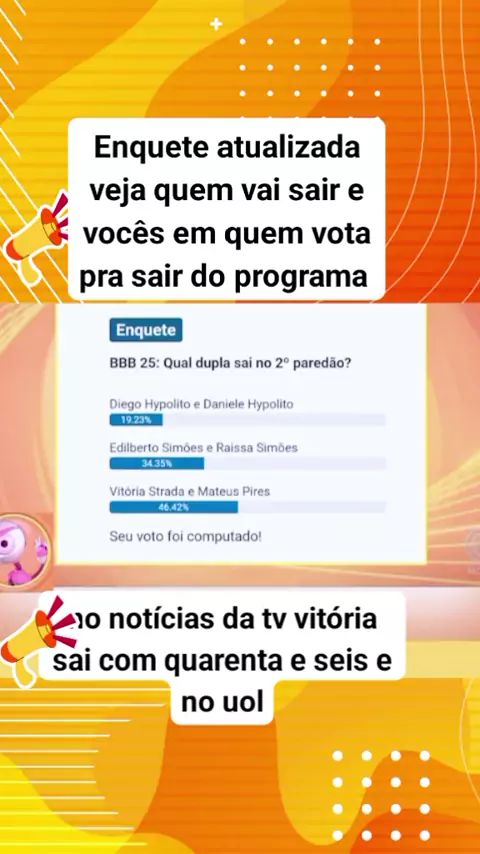 enquete autualizada quem sai do progama #paredão