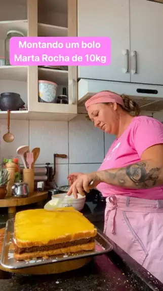 Montando um bolo Marta Rocha de 10kg #bolo #Receita #fyp #viral #fy Marta Rocha foi criada na Confeitaria Das Famílias, Rua Das Flores em Curitiba Paraná no ano de 1954 por Jesus Alves para homenagear a Miss Brasil Martha Rocha baiana de 21 anos que perdeu o concurso de Miss Universo para a estadunidense Miriam Stevenson por 2 polegadas de quadril, foi tipo uma final de copo do Mundo e após esse episódio fio criada a torta Martha Rocha que leva na receita, massa de pão de ló recheada com