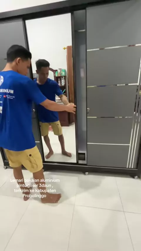 Lemari pakaian aluminium pintu geser 3 daun#lemaripakaian#lemariminimalis#hsaluminiumlumajang#lemarialuminium