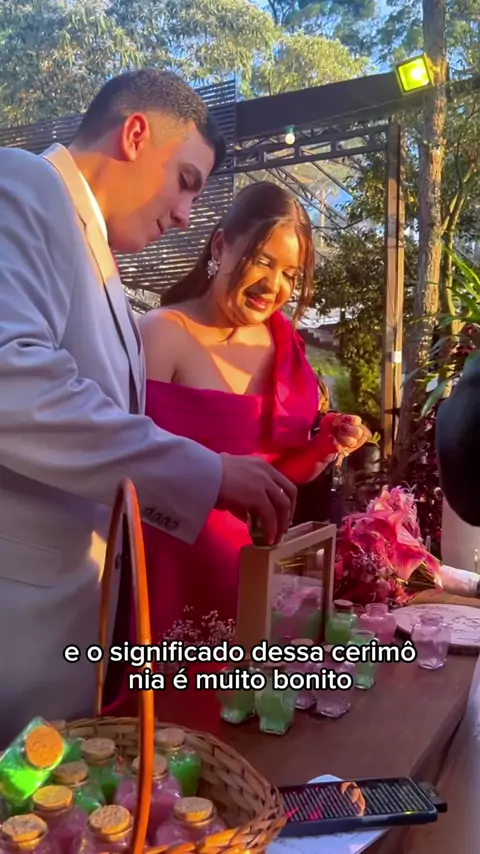 Fizemos a cerimônia das areias - Cada cor de areia representa um universo: a história, os sonhos e a essência de cada um dos noivos. Separadas, as areias são belas por si só, mas quando se unem, tornam-se algo novo, impossível de separar novamente, assim como o amor que agora se mistura em um só caminho. #casamento
