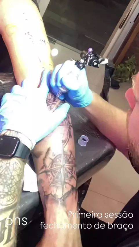 A 1ª sessão de fechamento de braço com tema religioso dessa tattoo durou 6hs. E vc, faria uma tattoo assim? Aguentará tanto tempo na sua 1ª tattoo? #tattoo #fechamento #tattooreligiosa #icaroesteves