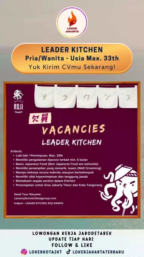 Lowongan Kerja Leader Kitchen - Roji Ramen Jaktim & Tangerang#lokerkitchen#lokerkitchencrew#lokercook#lokermasak#lokerfnb#lokerkuliner#lokerjakartatimur#lokerjaktim#lokertangerang#lokertangsel#lokerjakarta#lokerjabodetabek#lokerdkijakarta#lokerdepok#loker2023#infoloker2023#lowonganjakarta2023#lokerterbaru#lowongankerja#lowongankerjajakarta#lokerbogor#lokerbekasi#loker#lokerjkt#lokersmp#lokersma#lokersmk#lokersmasmk#lokerd3#lokers1
