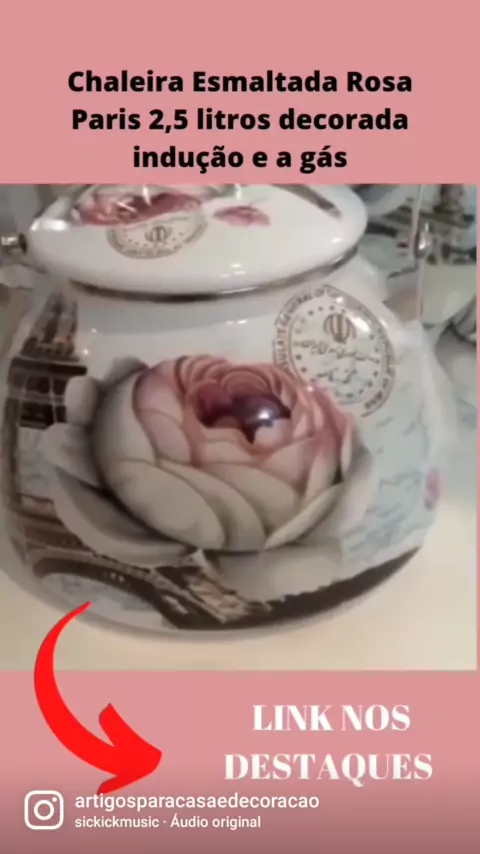 Chaleira Esmaltada Rosa Paris 2,5 litros decorada indução e a gás por R$152,90. #chaleira #chaleiraesmaltada #achadinhos #achadinhosshopee #utensiliosdecozinha