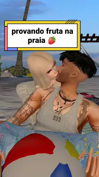 provando fruta na praia π