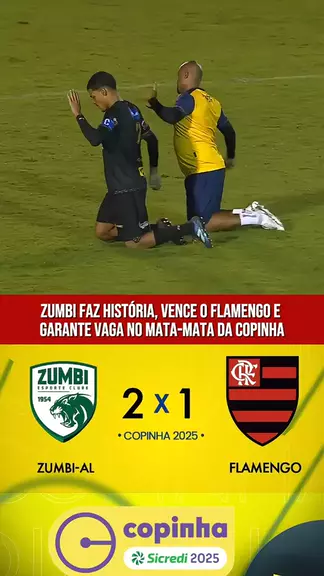 Na noite desta quarta-feira (8), o Zumbi conseguiu uma virada heróica contra o Flamengo e venceu por 2x1, o duelo válido pela segunda rodada da chave da copa São Paulo de futebol Jr. Essa foi a primeira vez na história que um clube alagoano venceu o Rubro-Negro na história da Copinha. E ainda garantiu a classificação antecipada para o mata-mata. #KwaiEsportes #Futebol #CopaSãoPaulo #Flamengo #Zumbi