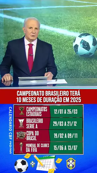 A CBF divulgou nesta terça-feira (12) o calendário do futebol brasileiro de 2025. A grande novidade é o Campeonato Brasileiro durando 10 meses, iniciando no dia 29 de março e terminando no dia 21 de dezembro. #KwaiEsportes #Futebol #Brasileirão #CrescerNaFamília