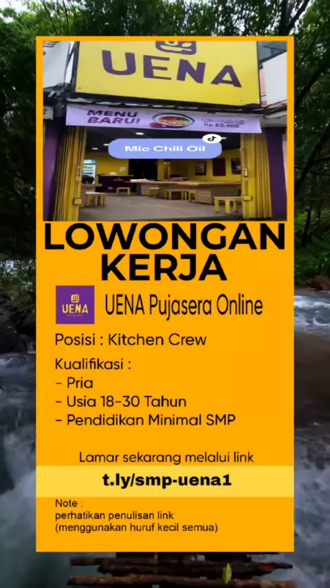 LOKER SD DAN SMP Kitchen Crew UENA Pujasera Online#loker#lokerupdate#infoloker#lowongankerja#uena#l