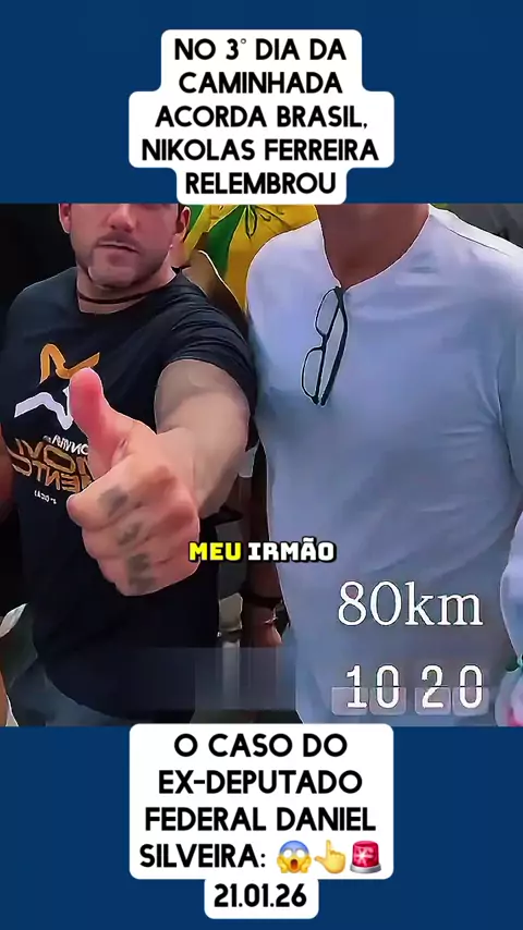 No 3º dia da Caminhada Acorda Brasil, Nikolas Ferreira relembrou o caso do ex-deputado federal Daniel Silveira: 😱👆🚨 #ultimasnoticias #noticias #politica #governo #ForaLula