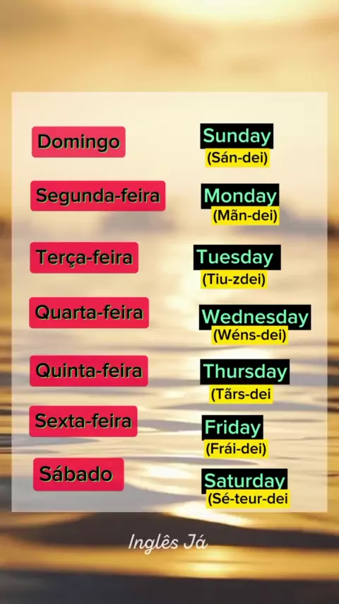 Aprenda agora os dias da semana em Inglês.